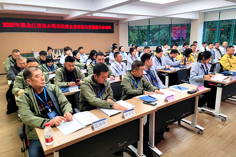 11月17日,2025年佳木斯市民营企业家综合素能提升研修班在浙江大学开班。来自全市重点行业民营企业负责人代表、新生代民营经济人士代表、“佳商传承·青蓝接力”计划的导师及学员代表、工商联直属商协会、异地佳木斯商会负责人代表和基层工商联干部等50人参加培训学习。