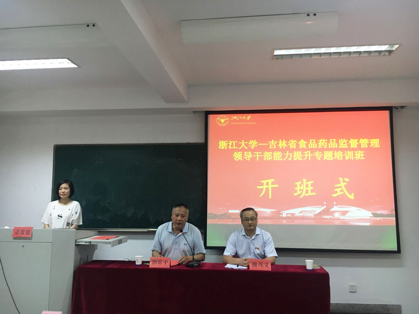 6月30日上午,由吉林省委组织部和吉林省食品药品监督管理局联合主办的吉林省食品药品监督管理领导干部能力提升专题培训班在浙江大学华家池校区顺利开班。吉林省食品药品监督管理局党组成员、副局长魏茂义,浙江大学继续教育学院督导组组长、原副院长郭常平出席开班式,53位学员参加此次培训。