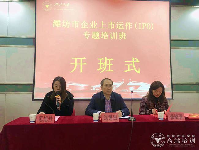 3月11日,受潍坊市地方金融监督管理局委托,潍坊市企业上市运作(IPO)专题培训班在浙江大学玉泉校区顺利开班。潍坊市地方金融监管局党组书记刘锡田出席了开班式,60多位学员参加了本次学习。