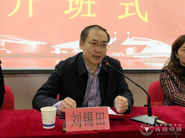刘锡田作开班动员讲话,他首先代表潍坊市地方金融监管局向浙江大学的领导和老师们表示感谢,并就潍坊企业上市发展的现状作了介绍。最后,他对本次培训学员提出了几点希望。一是希望培训学员们要珍惜学习机会,集中精力,认真学习;二是希望大家深入思考,学以致用,积极探索推进企业上市的新思路;三是希望大家保持良好的课堂纪律和到课率,确保培训效果,确保安全出行、安全培训。
