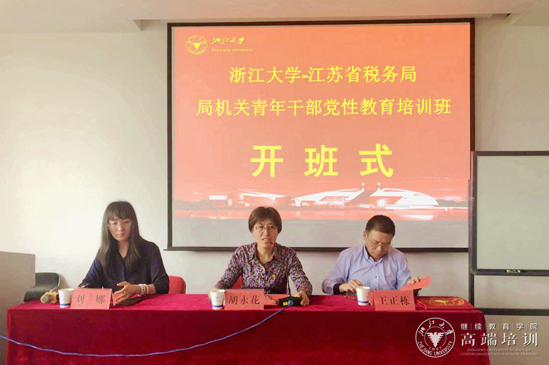 为进一步加强青年干部党性修养,坚定理想信息。4月21日下午,江苏省税务局局机关青年干部党性教育培训班在浙江大学华家池校区顺利开班。国家税务总局江苏省税务局机关党委专职副书记胡永花,浙江大学继续教育学院副院长王正栋及42位培训学员出席了开班式。