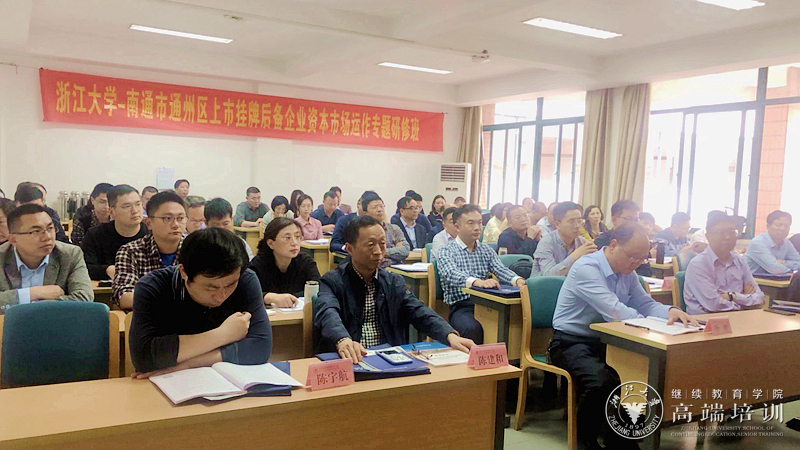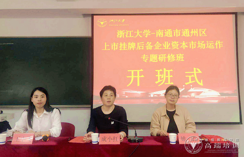 为进一步掌握宏观经济和资本市场新动态、新政策,拓展企业发展思路,引导企业家利用资本市场向更高层次发展,加快通州区企业上市挂牌步伐,4月22日下午,南通市通州区上市挂牌后备企业资本市场运作专题研修班在浙江大学华家池校区举行。南通市通州区委常委、常务副区长成小红,浙江大学继续教育学院副院长姚青出席了开班式,来自南通市通州区地方金融监督管理局组织全区上市挂牌后备企业的主要负责人,各镇(区、园、街道)负责金融工作的联络员、企业上市工作领导小组部分成员单位相关人员参加了本次学习。