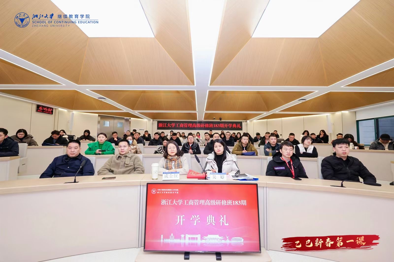 开学典礼上,学院领导对全体学员表示热烈欢迎,希望学员们以浙大“求是创新”精神为指引,在研修中碰撞智慧、赋能未来。学员代表在发言中表示,将珍惜重返校园的宝贵机会,以空杯心态汲取新知,将学习成果转化为企业创新动力。