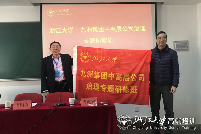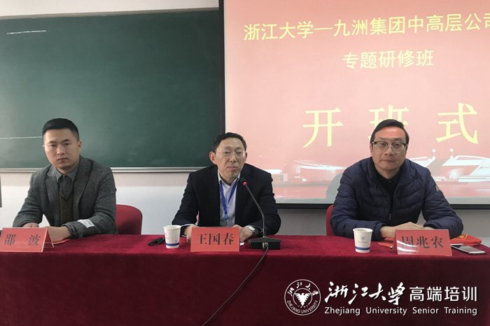 3月11日上午,九洲集团中高层公司治理专题研修班在浙江大学华家池校区开班,集团54名中高层管理干部参与此次培训。四川九洲电器集团党委副书记、副董事长王国春,全国干部教育培训浙江大学基地副主任,浙江大学继续教育学院副院长、纪委书记周兆农出席了开班仪式。