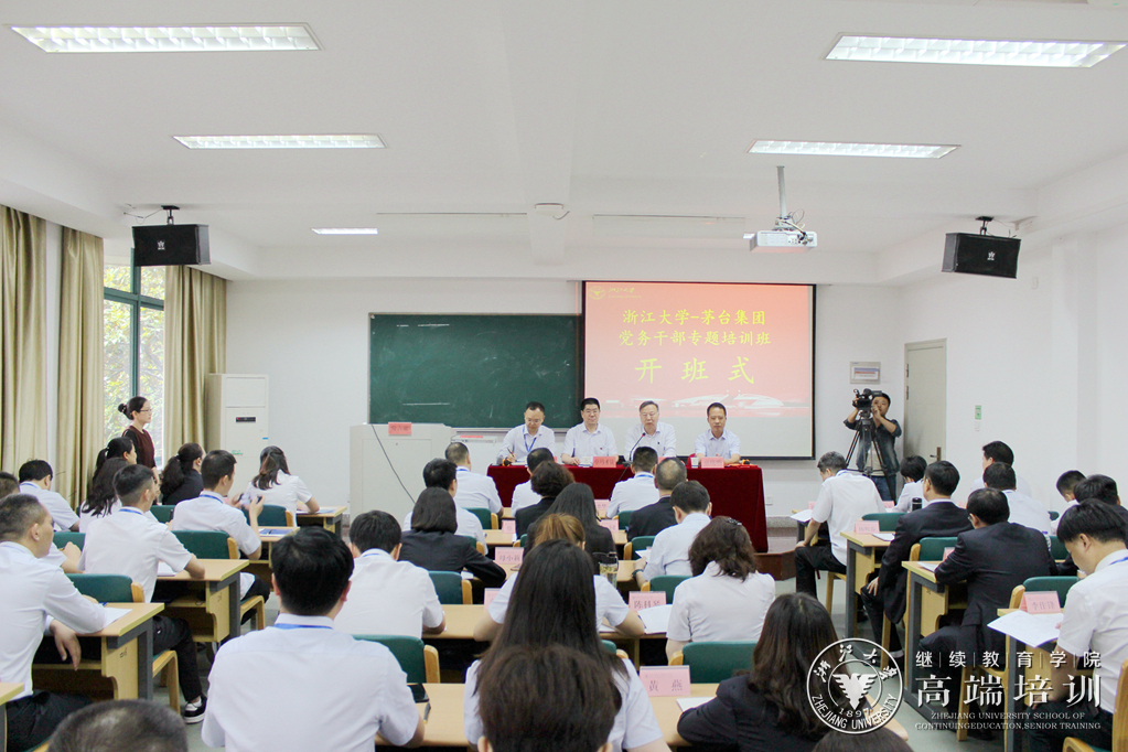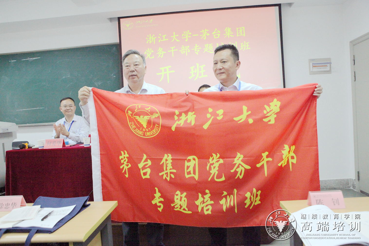 5月13日上午,受茅台集团委托,由浙江大学继续教育学院、全国干部教育培训浙江大学基地承办的茅台集团党务干部专题培训班在华家池校区顺利开班。茅台集团党委委员、纪委书记卓玛才让,党委组织部副部长何爱华,浙江大学发展委员会副主席陈子辰出席了开班式,开班式由浙江大学继续教育学院党委书记、全国干部教育培训浙江大学基地常务副主任童晓明主持。来自茅台集团的41名党务干部学员参加了培训学习。