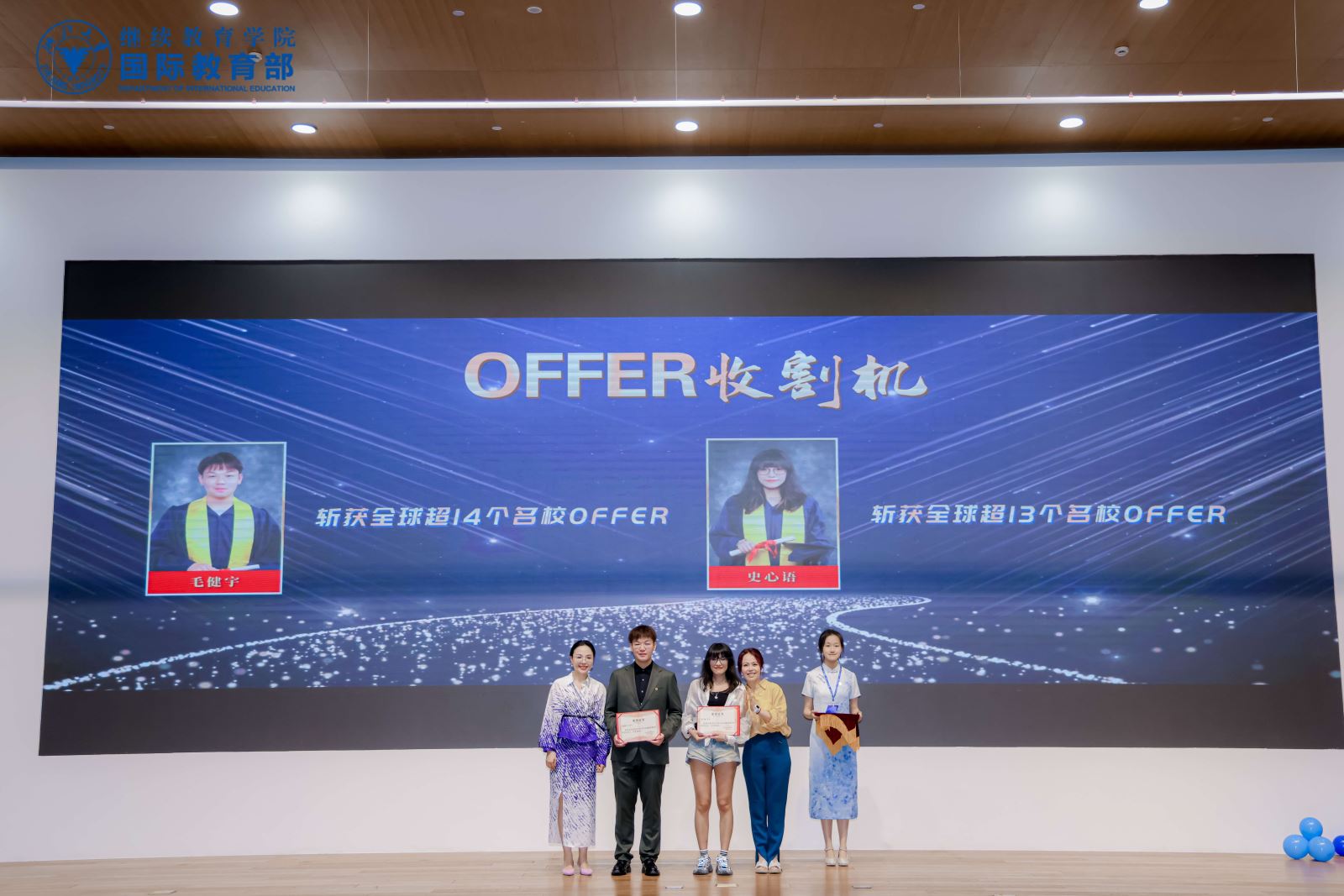图1: 毛同学(左二)在毕业典礼上领取offer收割机奖项