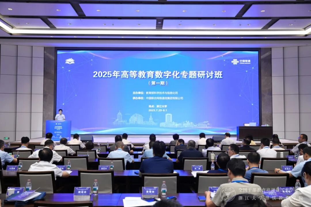 2025年7月28日至8月1日,由教育部科学技术与信息化司主办,中国联合网络通信集团有限公司与浙江大学联合承办的“2025年高等教育数字化专题研讨班(第一期)”在浙大干训基地、继续教育学院举办,来自全国各省市自治区教育厅以及79所高校的100余名代表参加研讨班。