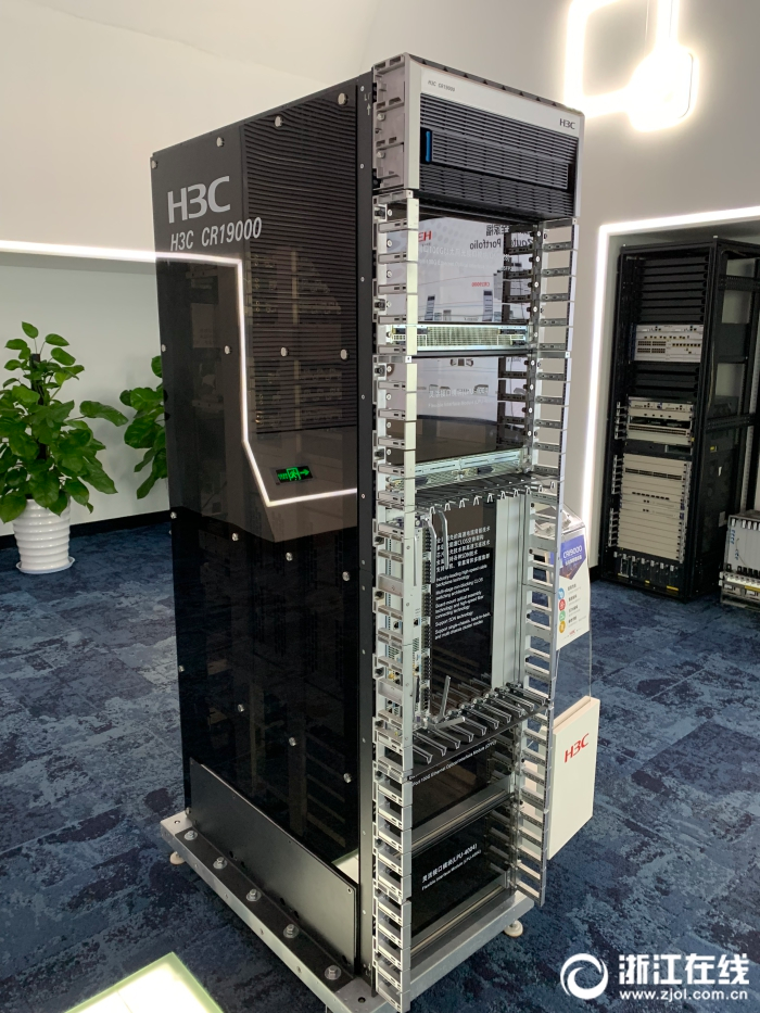 “这台是由新华三一千名研发工程师历时三年打造出来的,推出以后在全球引起巨大的轰动。”企业负责人指着一台黑色的“大柜子”告诉记者,这台CR19000是业界推出的第一款P级的云化集群路由器,主要用在运营商广域网出口,支撑运营商为用户提供数据和语音、视频等业务。它的性能有多强大?几台设备便可以支撑整个浙江用户的语音通话、上网、高清电视等需求。从技术含量来说,该产品在全球属于行业内最顶尖的产品之一。