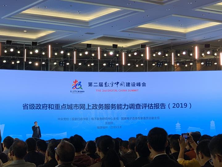5月8日,在第二届数字中国建设峰会闭幕式上,中央党校(国家行政学院)电子政务研究中心主任、国家电子政务专家委员会副主任王益民发布《省级政府和重点城市网上政务服务能力调查评估报告(2019)》。