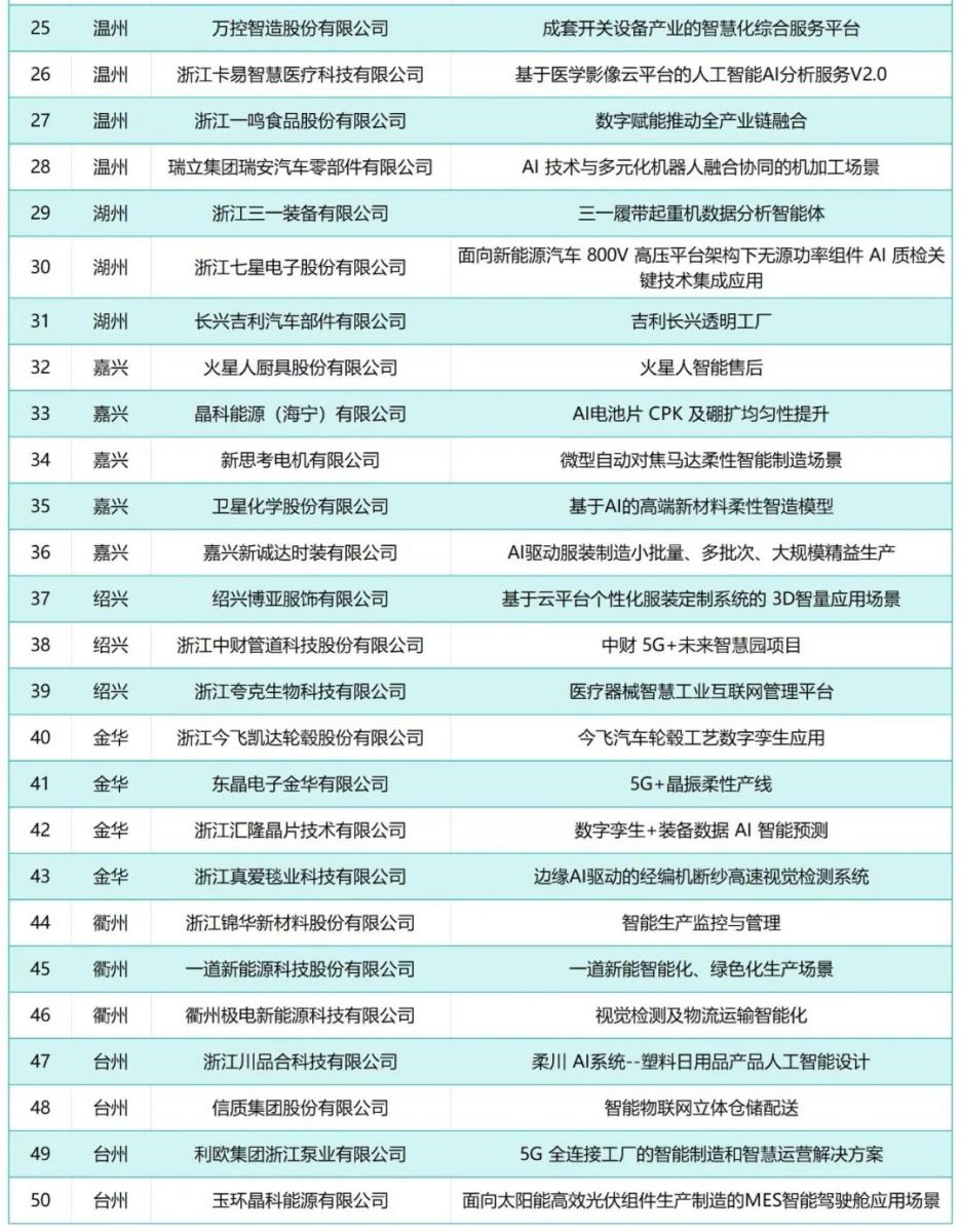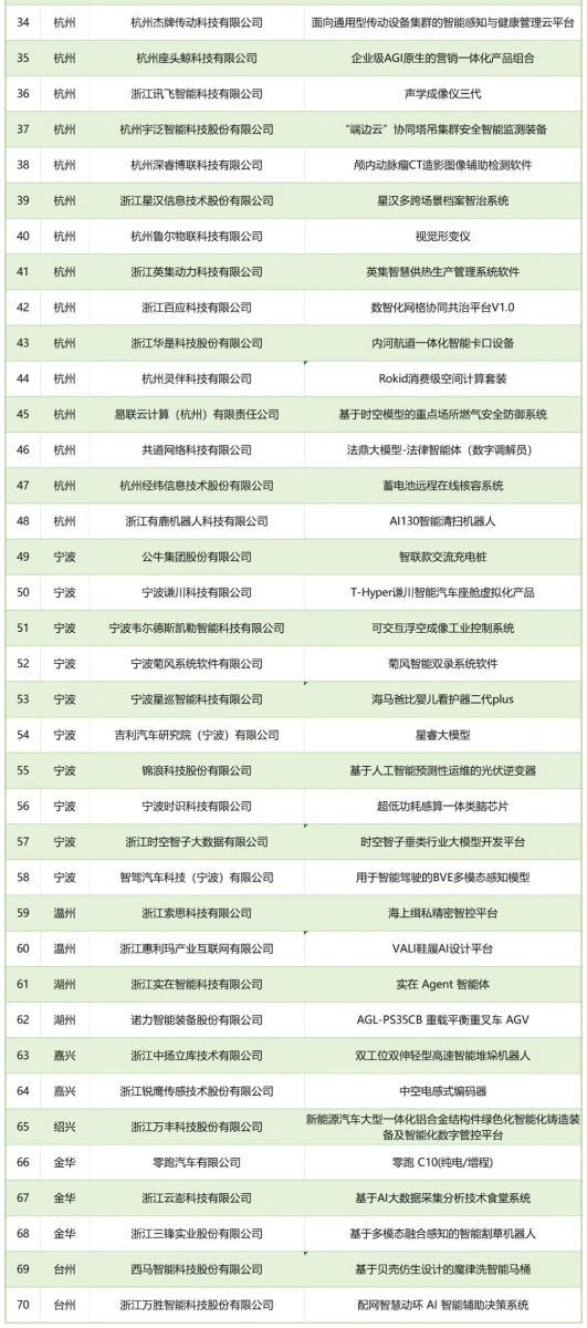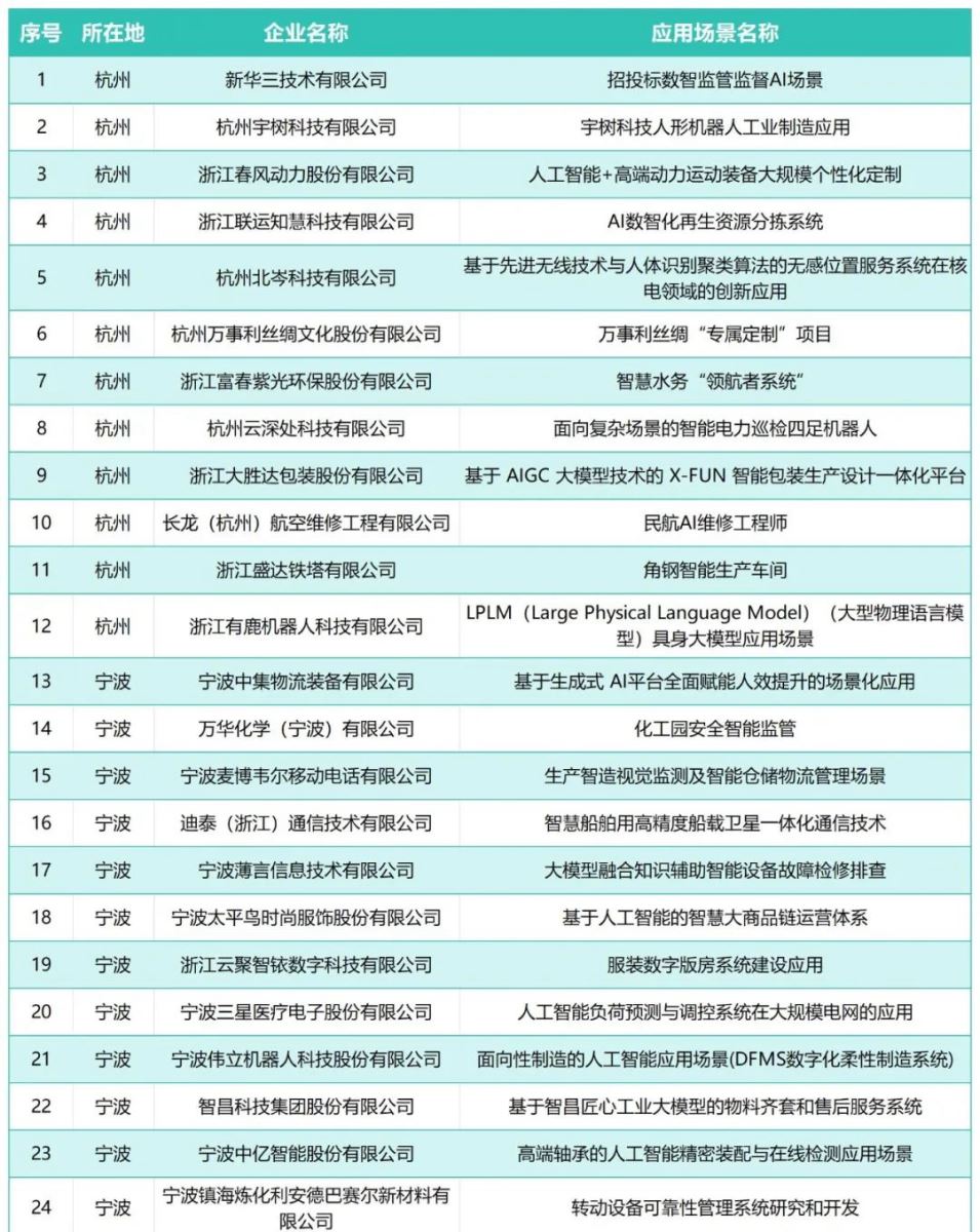 为加快推动人工智能创新应用,赋能产业深度转型,日前,省经信厅确定2024年浙江省人工智能应用场景50个、应用标杆企业25家、人工智能服务商34家、“数智优品”70项。