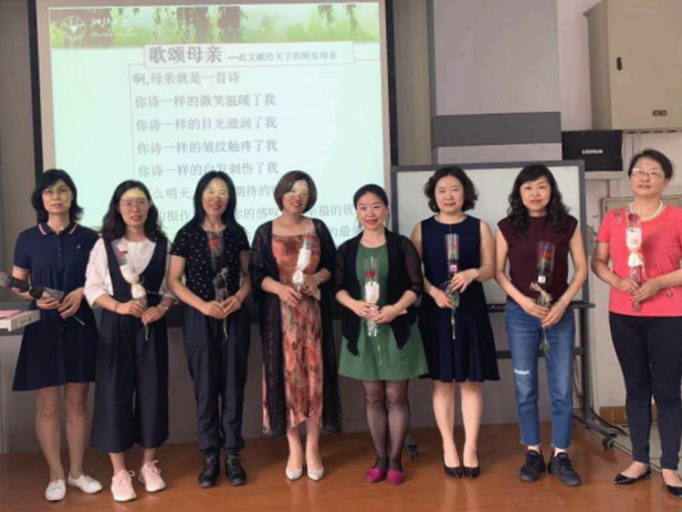 今天刚好也是母亲节和护士节。在这个特殊的节日里,景博同学用一首深情的诗朗诵——《歌颂母亲》表达了对天下所有母亲的敬意。几位同学也分别向班里面的女士献上鲜红色的康乃馨,祝福她们永远年轻漂亮。