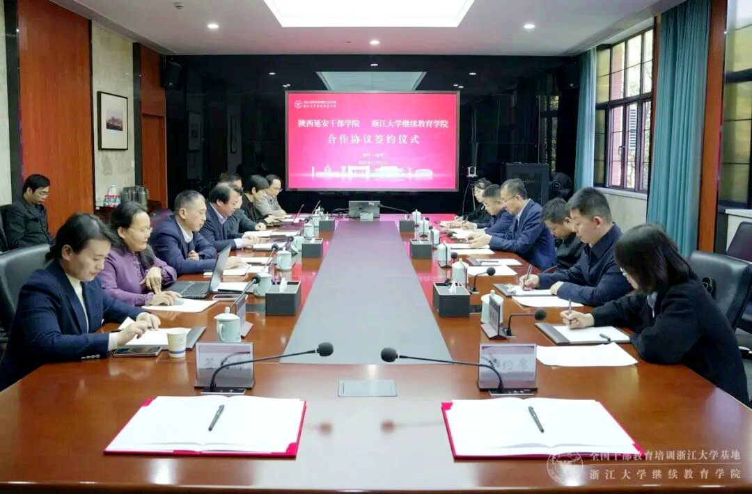 浙江大学继续教育学院和陕西延安干部学院双方有关部门负责人等参加签约仪式。