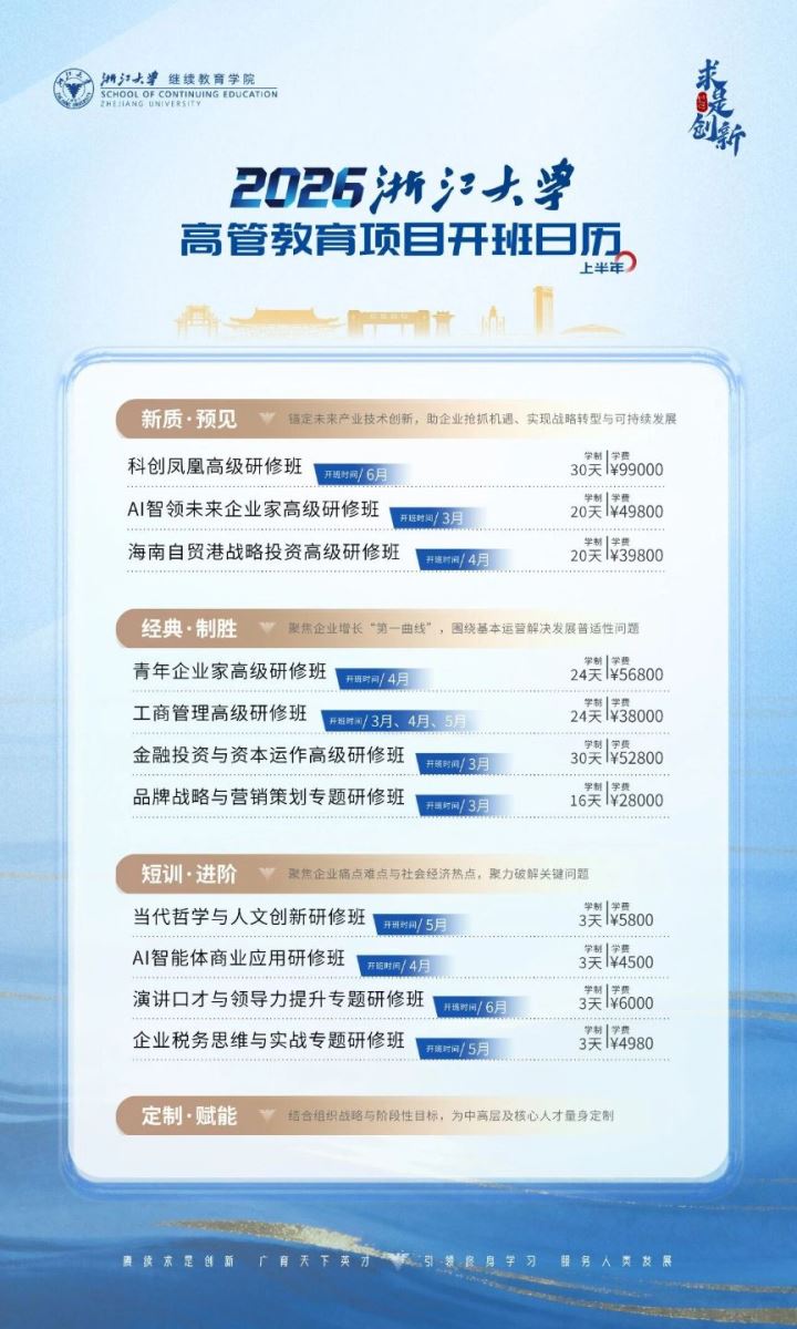 预告 | 2026年浙江大学继续教育学院企业家培训课程项目
