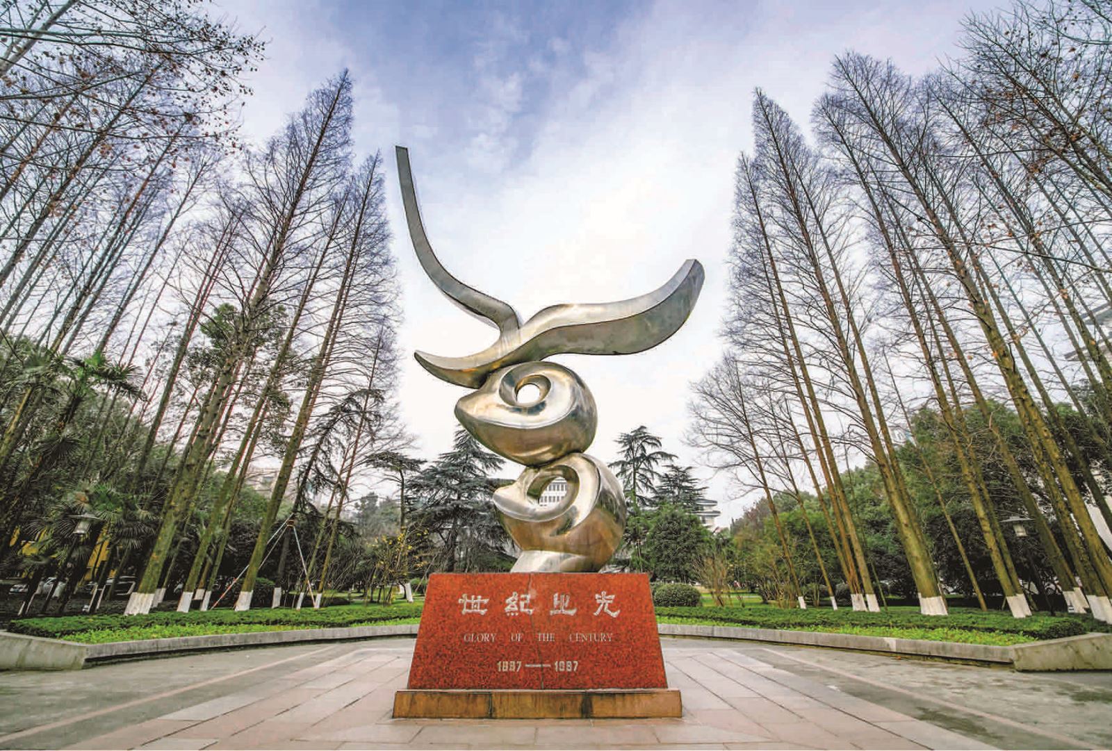 1999 年,原杭州大学旧址改称“浙江大学西溪校区”。西溪校区主教学区在南区。这里的校舍顺着南北走向的慎思路、阳明路、月轮路而依次展开。其中,慎思路和阳明路又是校园中的主要道路,慎思路以西为西教学区,阳明路以东为东教学区。
