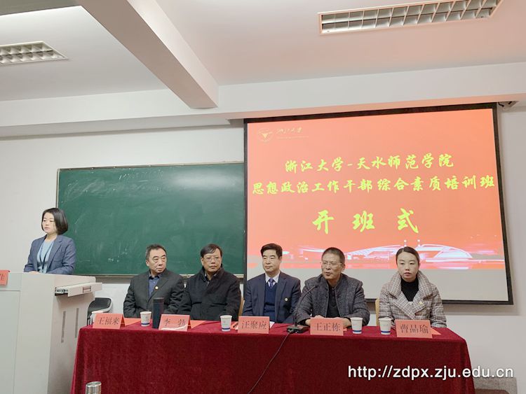 天水师范学院副校长汪聚应、天水师范学院学生工作处处长李勃、天水师范学院校团委书记曹晶瑜、天水师范学院资环与环境工程学院书记王福来和浙江大学继续教育学院副院长王正栋共同出席了开班式。