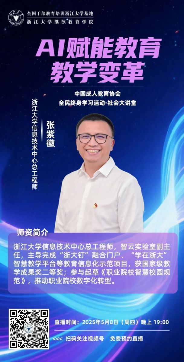 浙大信息技术中心总工程师张紫徽在线开讲“AI赋能教育教学变革”