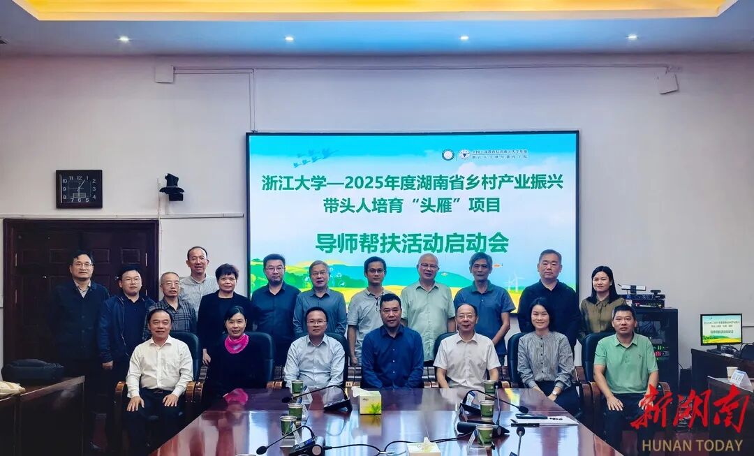 10月13日,湖南省乡村产业振兴带头人培育“头雁”项目导师走访启动仪式举办,湖南省农业农村厅相关部门负责人,浙江大学继续教育学院副院长、纪委书记章旻参加活动。会上为刘军、于美娟、于勇、徐海圣、严力蛟5位导师发放聘任证书,湖南导师团队分享指导工作经验及成效。